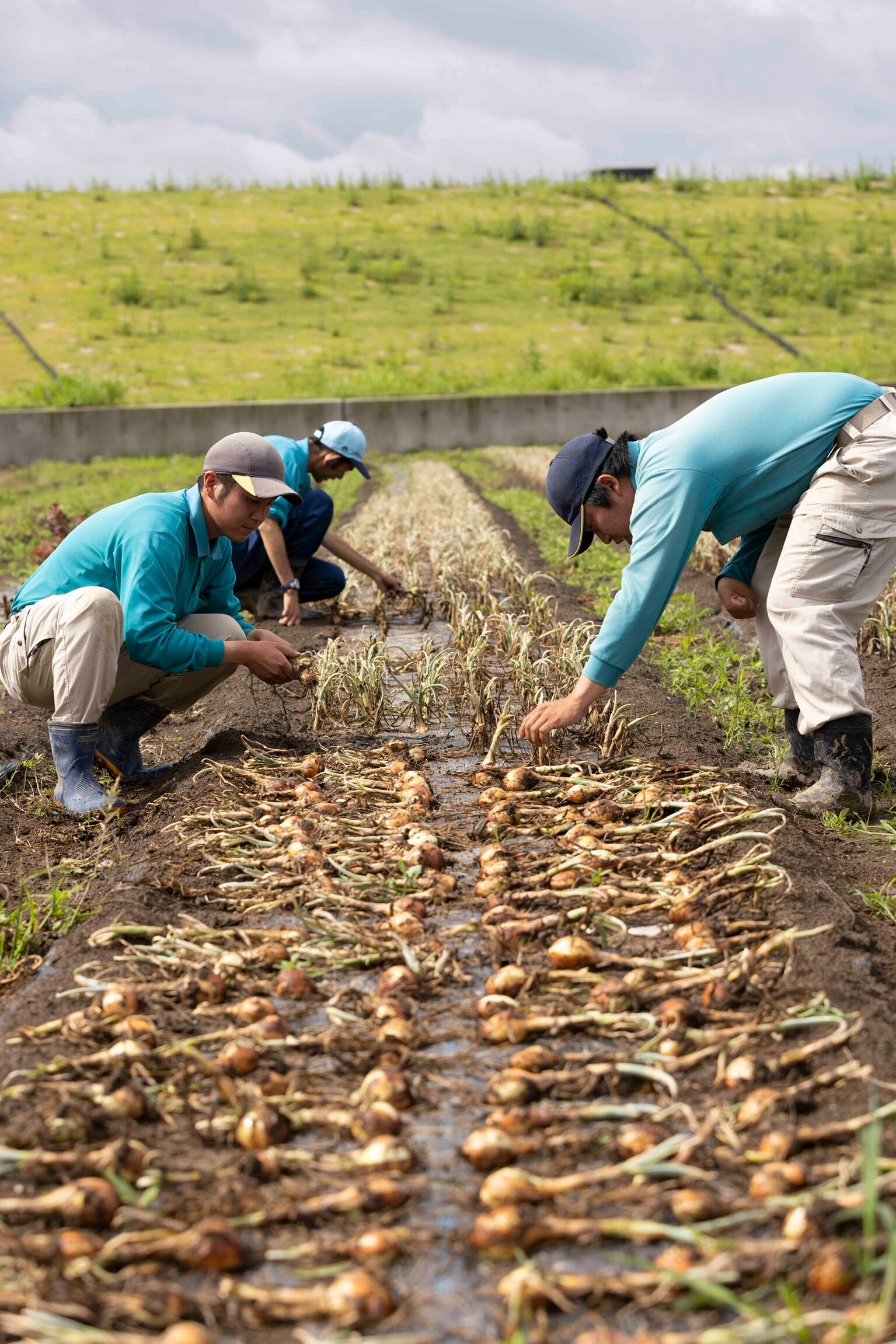 1、農薬・除草剤を使わず自社農場で栽培した、たまねぎとゴマを使用。